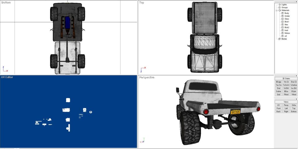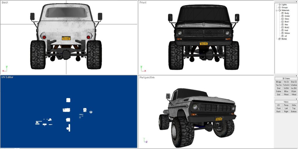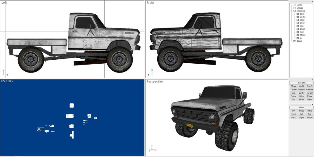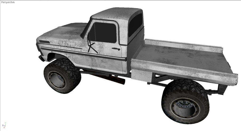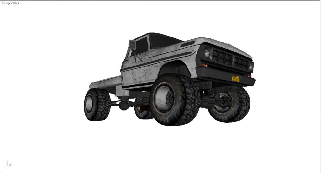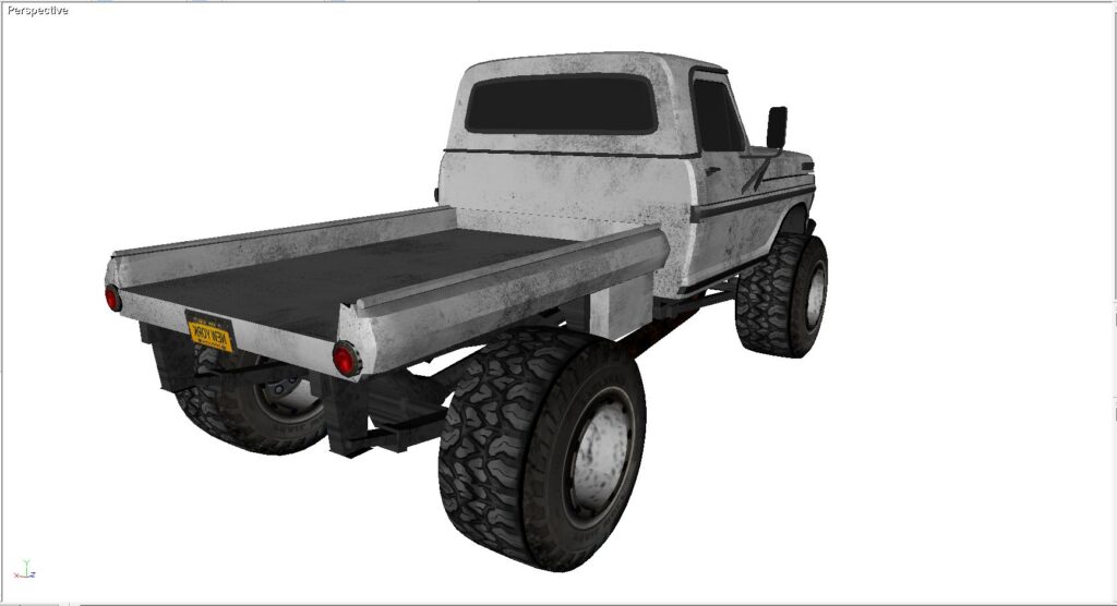 This is a 1968 Ford truck cab, mated to a custom rear flatbed bed. I like the way the old Fords looked and wished I had the time and money to swap out the frame to a modern 4×4 truck of some kind, modern V8, etc. This model is built in Direct X. It includes all of the maps and graphics as shown. It also comes in 3DS, FBX, OBJ as well as Direct X.
