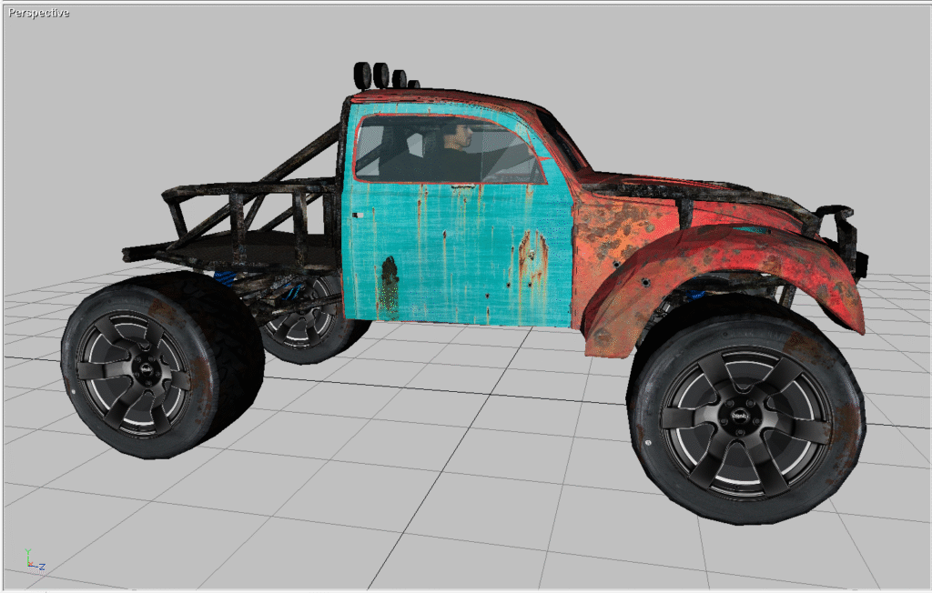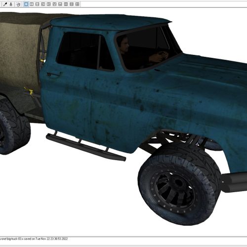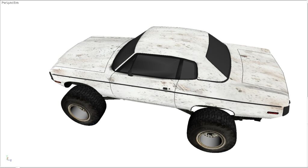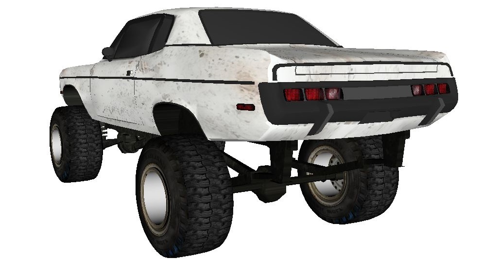 This is an AMC Reble. The stock frame is gone and a chevy blazer 4×4 frame has been grafted in. I actually owned a few vehicles like this. Red Neck? Yes, I could have cared less though. This model is built in Direct X. It includes all of the maps and graphics as shown. It also comes in 3DS, FBX, OBJ as well as Direct X.