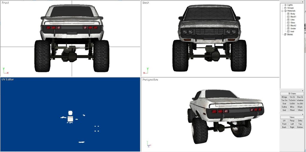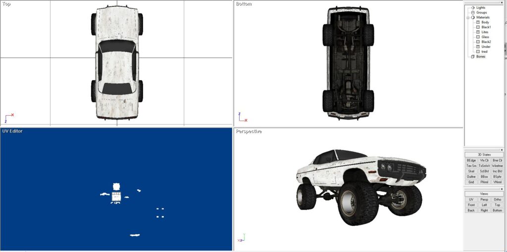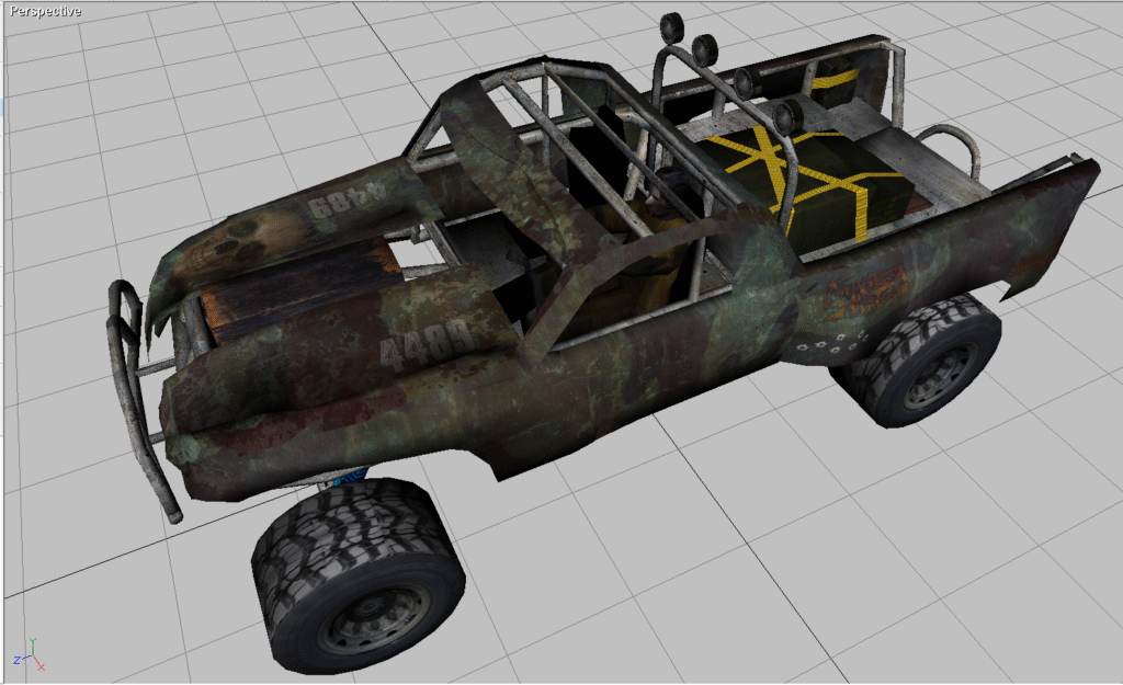 The model comes only as a direct X model. It comes with all of the UV work as shown in the video. It also comes in three setups: Ex commandeered Police Cruiser in Black and White, Yellow off-road, Red off-road and white off-road…