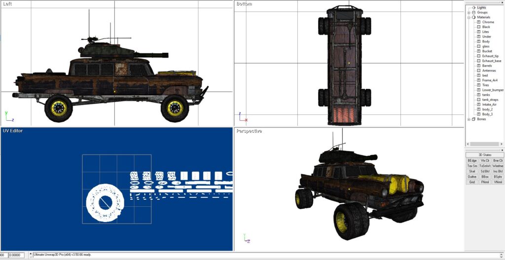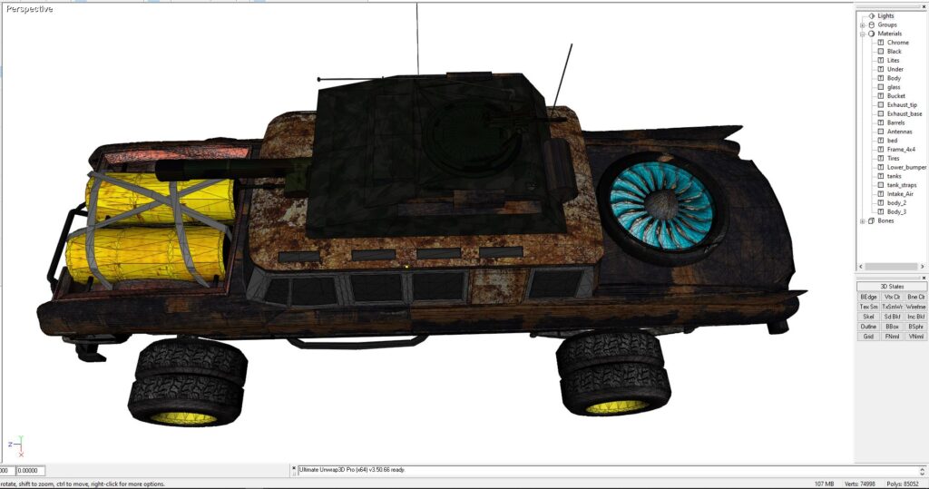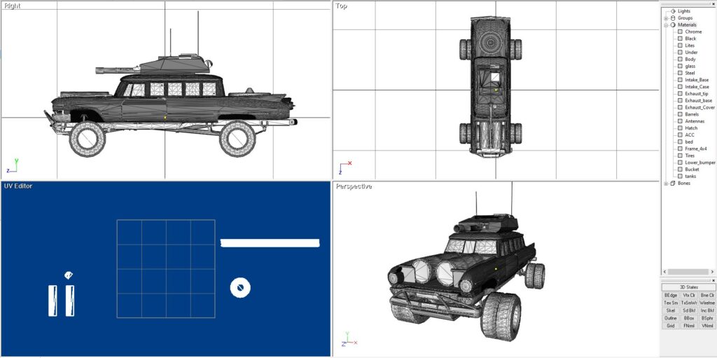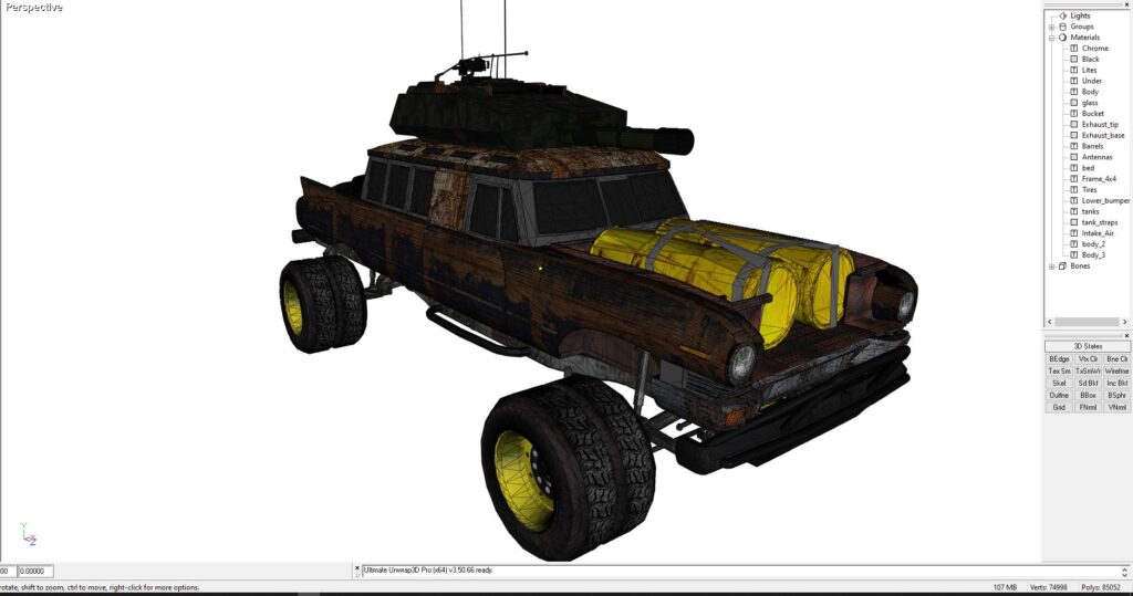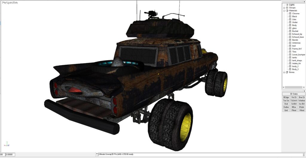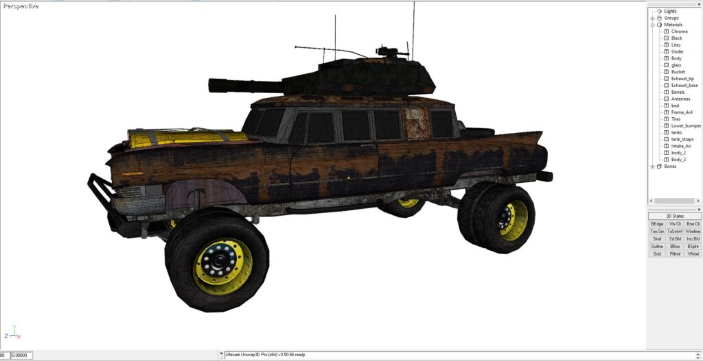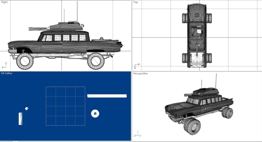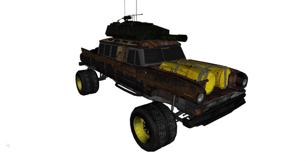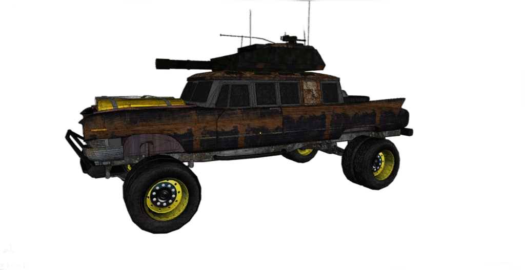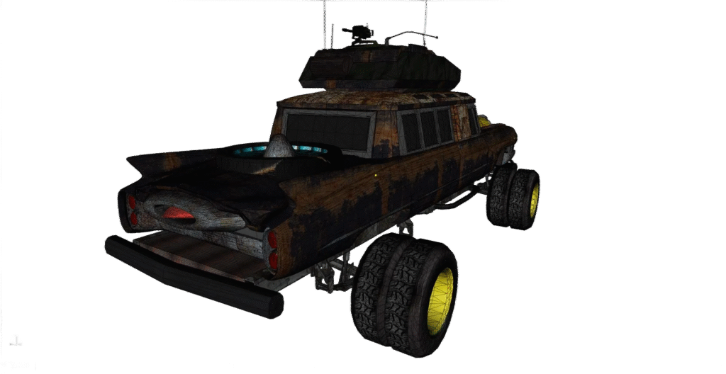 This is a reworked 1960 wastelands Caddy. Rescued from the junkyard and then fitted with a tank top with a live gun. The engine is a turbine, the front motor area has been converted to a jet fuel storage area. This is in Direct X, FBX, OBJ and 3DS and includes all of the image and graphics to reproduce the car as shown. #3DS #obj #fbx #directx #dellsweet #1960Cadillac #3dmodel
