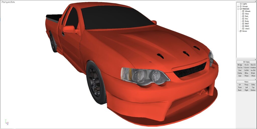 The model comes only as a direct X model. It comes with all of the UV work as shown in the video. It also comes in three setups: Ex commandeered Police Cruiser in Black and White, Yellow off-road, Red off-road and white off-road…